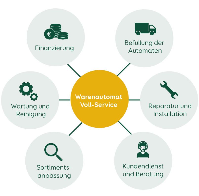 Ist Ihnen das zu aufwendig, bieten einige Hersteller auch einen Automatenfüllservice an. Hierbei kommt eine Firma bei Ihnen vorbei und füllt Ihre Warenautomaten mit Snacks und Getränken aus ihrem Sortiment. In der Regel können Sie sich zuvor mit der Fachfirma absprechen, welche Produkte Sie in Ihrem Warenautomaten anbieten möchten.